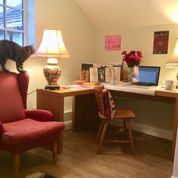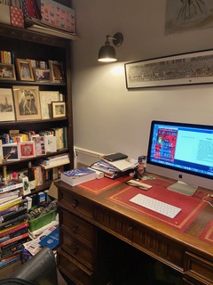 My husband and I moved home in August 2019, and a big selling point of our new house was that it has a little office tucked away from the rest of the rooms, up its own little flight of stairs. It is the perfect space for me to write in – personal and private (Virginia Woolfe would approve!). It can get a bit chilly in winter, so I often take a hot water bottle in with me, but it really is a special place. Only my cat Mimi ever really goes in there, other than me.